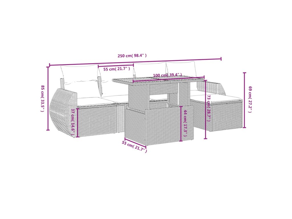Tato zahradní sedací souprava je dokonalým doplňkem vaší zahrady, terasy nebo dvorku a poskytne vám pohodlné a příjemné místo, kde si můžete povídat s rodinou a přáteli nebo jen tak odpočívat a užívat si pobyt venku.