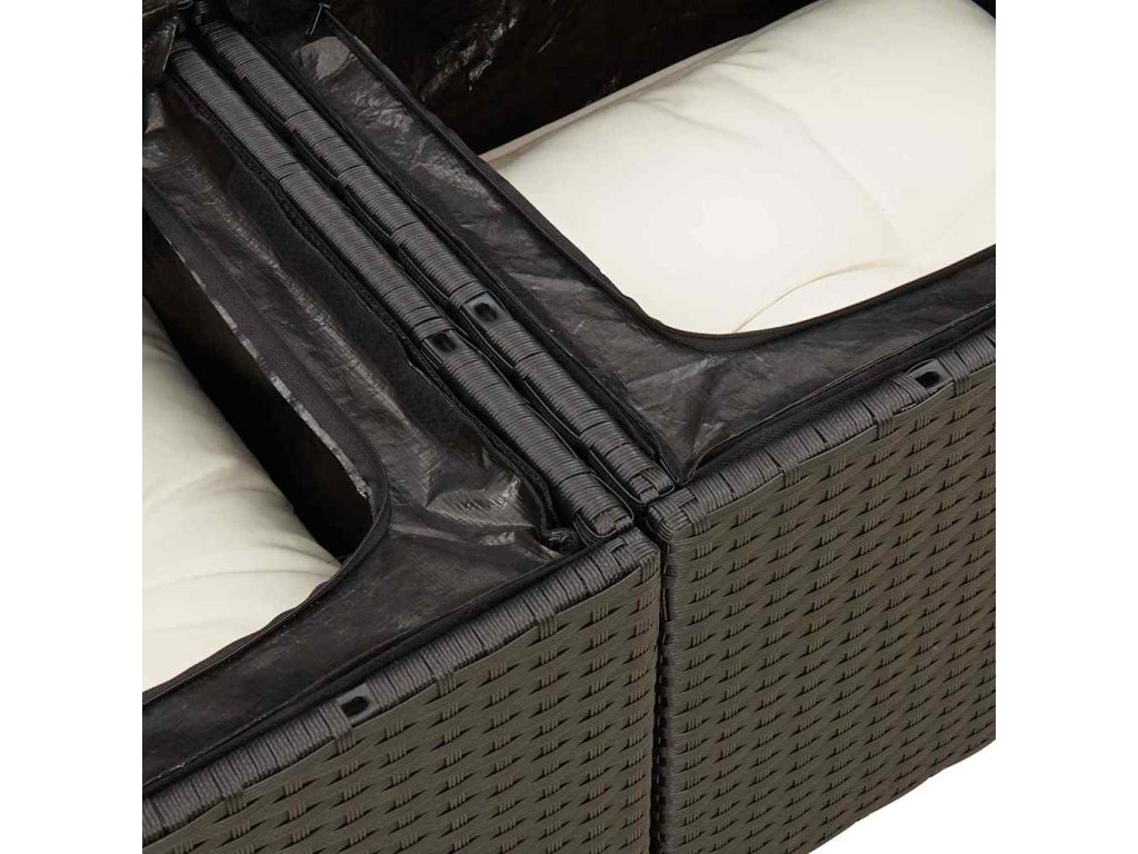 - Úložný prostor s voděodolným vakem: Zahradní nábytek má úložný prostor pod sedákem, který je opatřen voděodolnou vložkou a poslouží vám k ukládání podušek, hraček a dalších věcí. Vnitřní vak lze bezpečně připevnit k venkovnímu nábytku pomocí suchého zipu, což zaručí větší stabilitu.