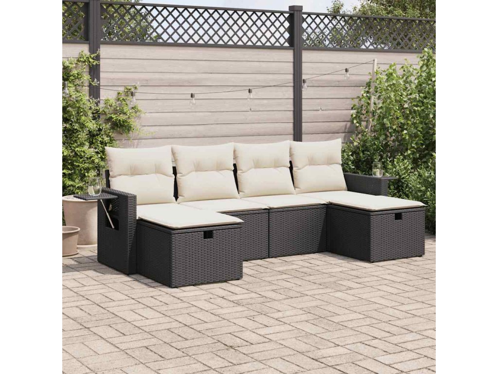 6dílná zahradní sedací souprava s poduškami černá polyratan 3325522