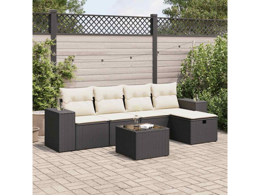 6dílná zahradní sedací souprava s poduškami černá polyratan 3325672