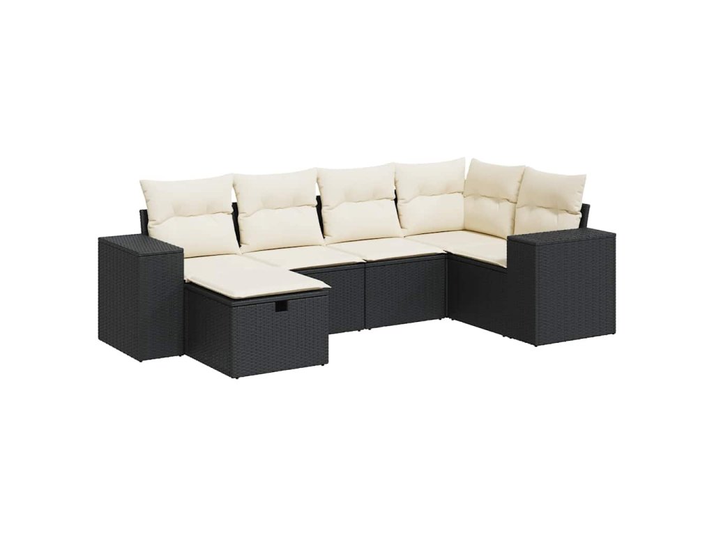 6dílná zahradní sedací souprava s poduškami černá polyratan 3325682