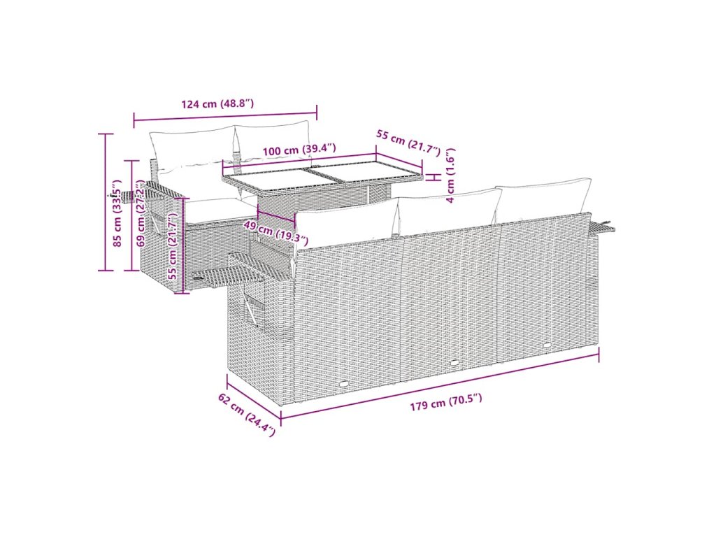 Tato zahradní sedací souprava je dokonalým doplňkem vaší zahrady, terasy nebo dvorku a poskytne vám pohodlné a příjemné místo, kde si můžete povídat s rodinou a přáteli nebo jen tak odpočívat a užívat si pobyt venku.