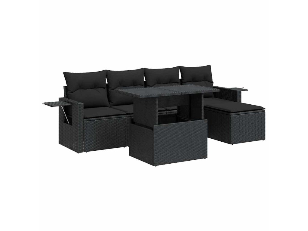 6dílná zahradní sedací souprava s poduškami černá polyratan 3326456