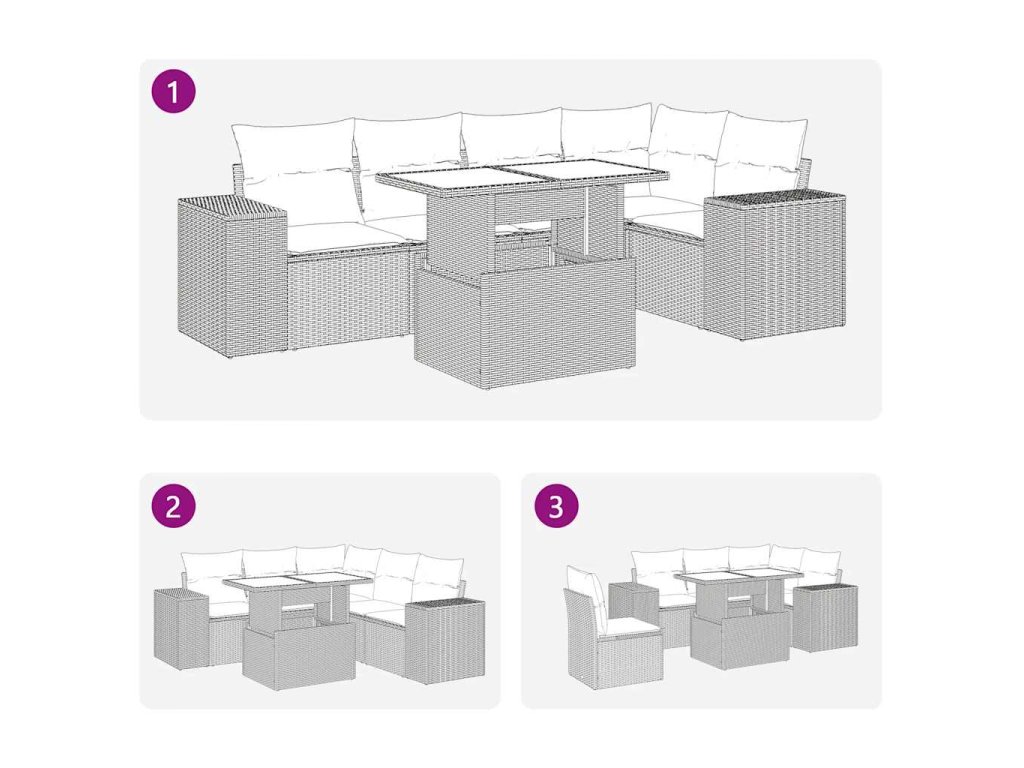 - Modulární design: Tato sada venkovního nábytku se vyznačuje modulární konstrukcí, je tedy zcela flexibilní a lze ji snadno přemisťovat, takže si můžete uspořádat venkovní nábytek dle vašich potřeb.