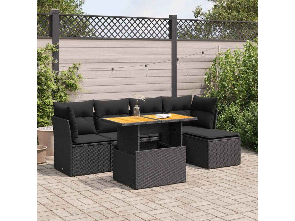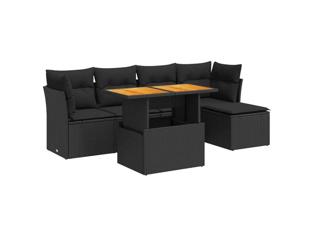 6dílná zahradní sedací souprava s poduškami černá polyratan 3326911