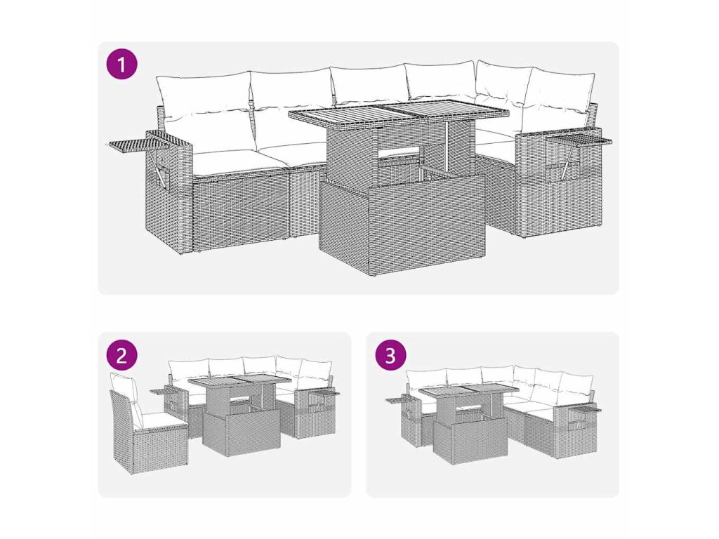 - Modulární design: Tato sada venkovního nábytku se vyznačuje modulární konstrukcí, je tedy zcela flexibilní a lze ji snadno přemisťovat, takže si můžete uspořádat venkovní nábytek dle vašich potřeb.