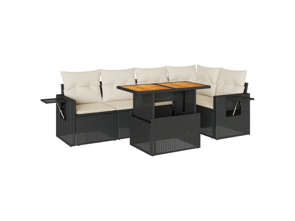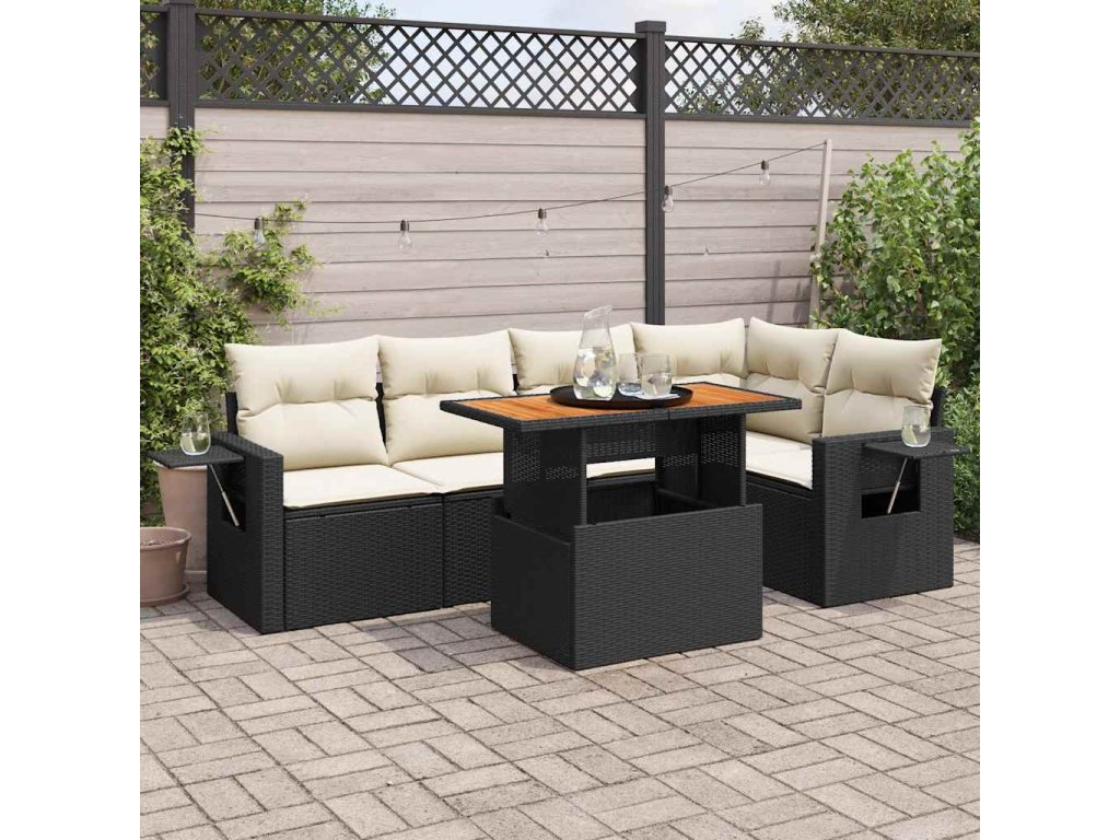 6dílná zahradní sedací souprava s poduškami černá polyratan 3327150