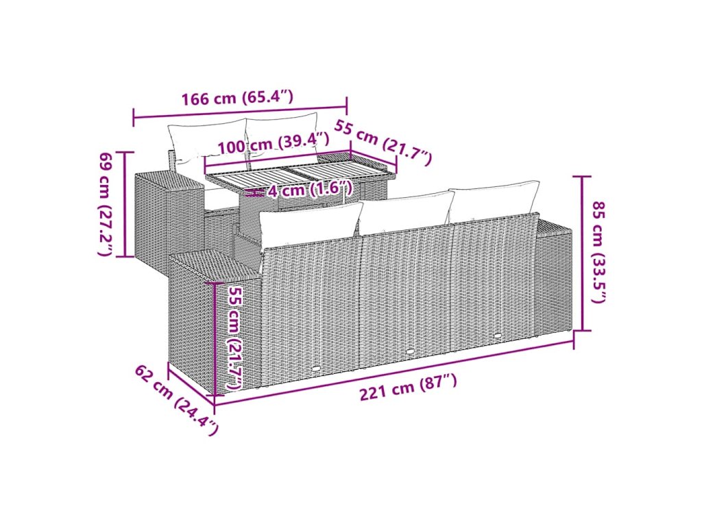 Tato zahradní sedací souprava je dokonalým doplňkem vaší zahrady, terasy nebo dvorku a poskytne vám pohodlné a příjemné místo, kde si můžete povídat s rodinou a přáteli nebo jen tak odpočívat a užívat si pobyt venku.