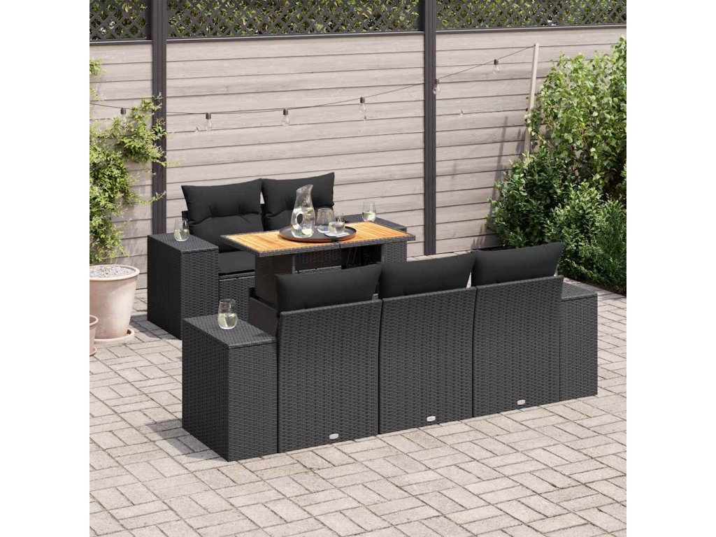 6dílná zahradní sedací souprava s poduškami černá polyratan 3327324