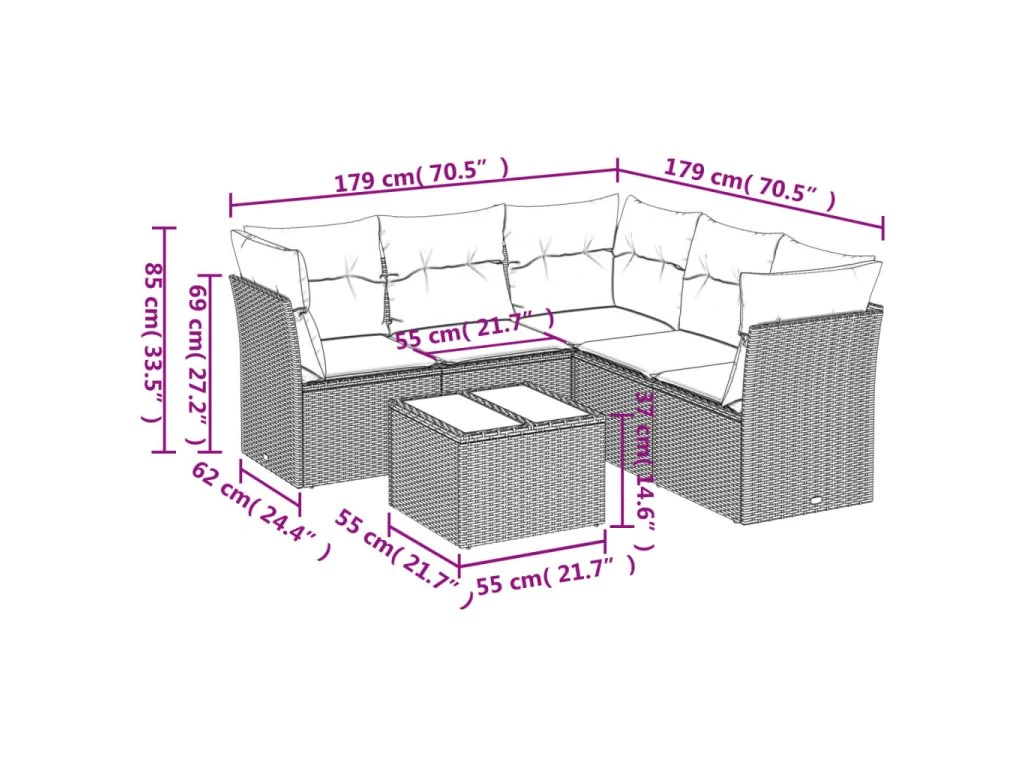 Tato zahradní sedací souprava je dokonalým doplňkem vaší zahrady, terasy nebo dvorku a poskytne vám pohodlné a příjemné místo, kde si můžete povídat s rodinou a přáteli nebo jen tak odpočívat a užívat si pobyt venku.