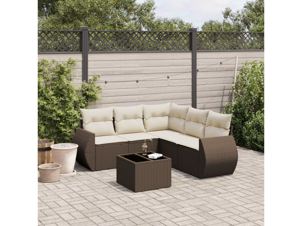 6dílná zahradní sedací souprava s poduškami hnědá polyratan 3221362