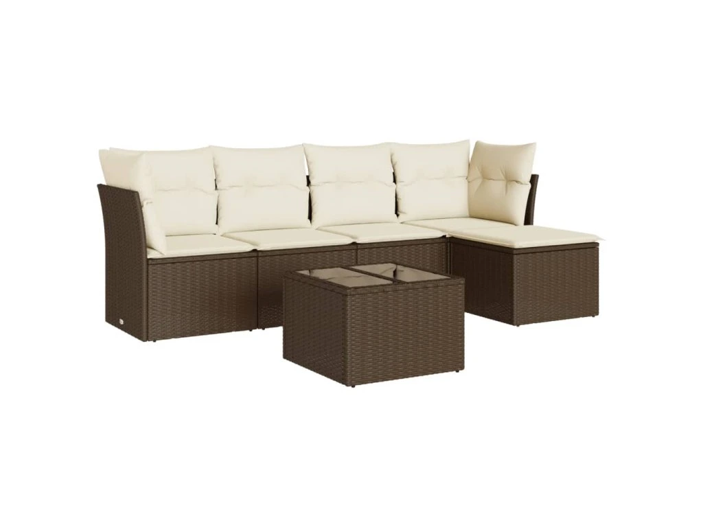 6dílná zahradní sedací souprava s poduškami hnědá polyratan 3249412