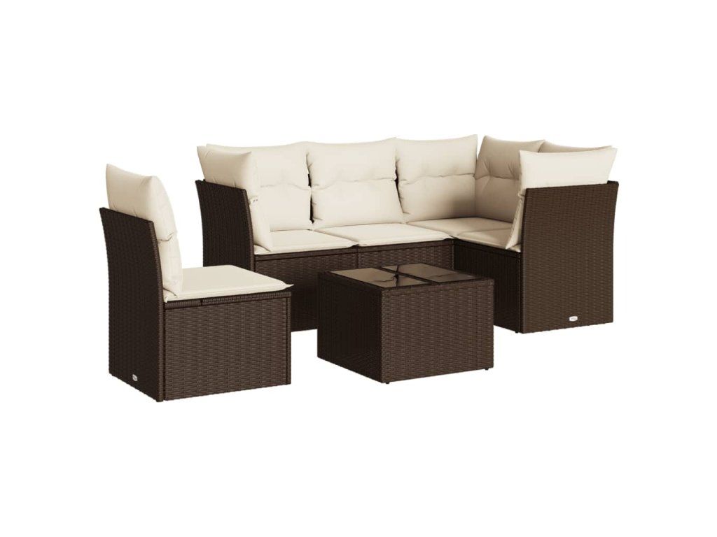 6dílná zahradní sedací souprava s poduškami hnědá polyratan 3249492