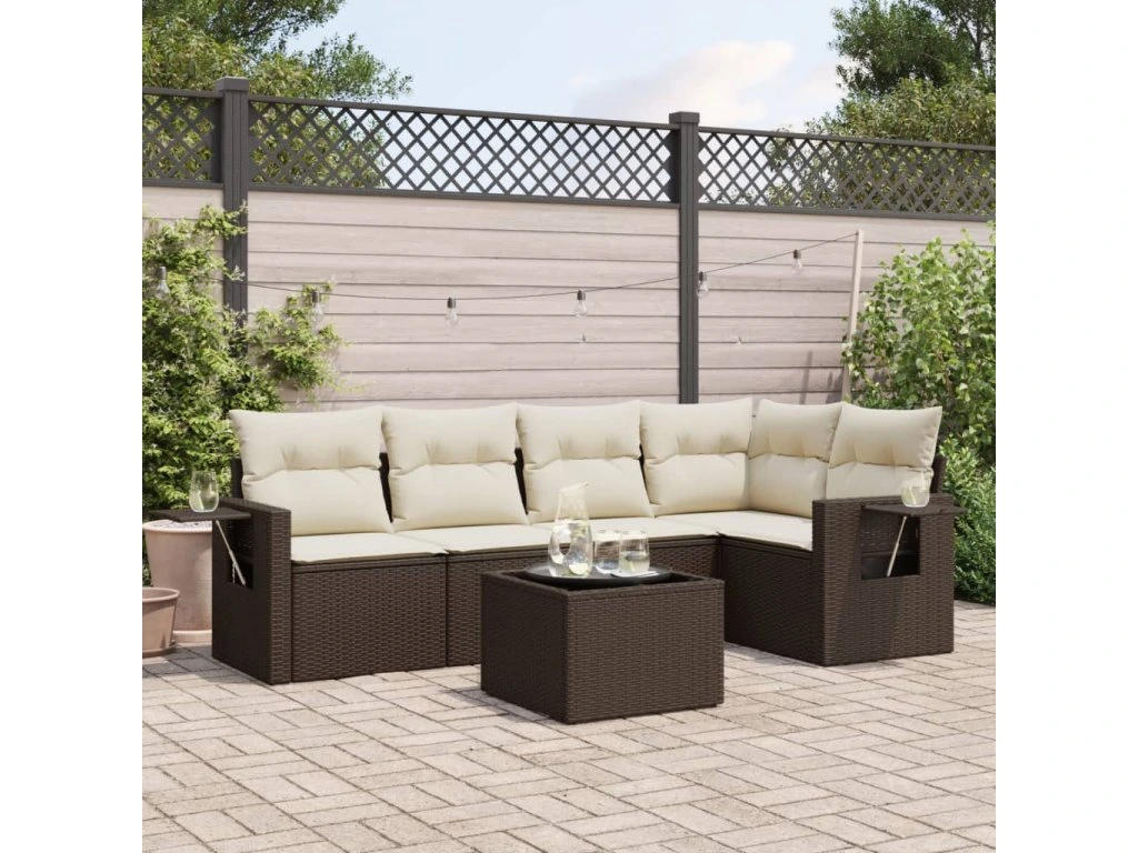 6dílná zahradní sedací souprava s poduškami hnědá polyratan 3252480