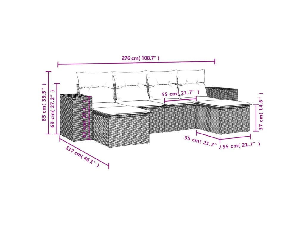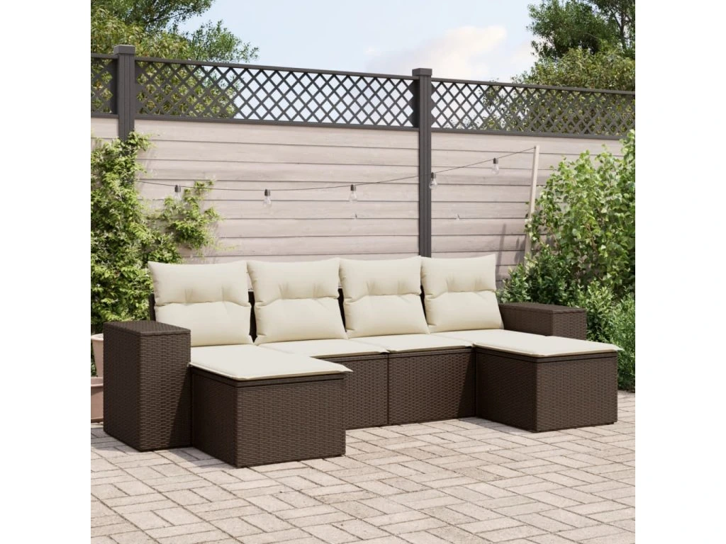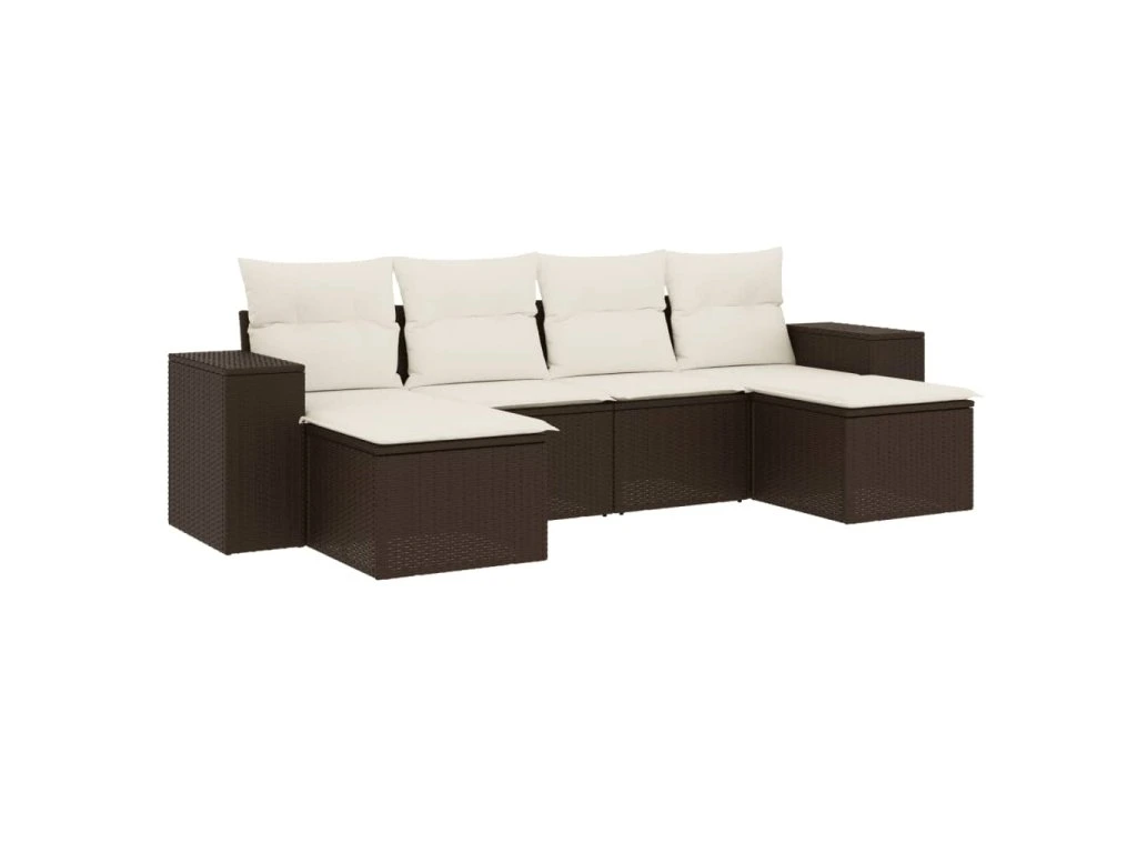 6dílná zahradní sedací souprava s poduškami hnědá polyratan 3255260