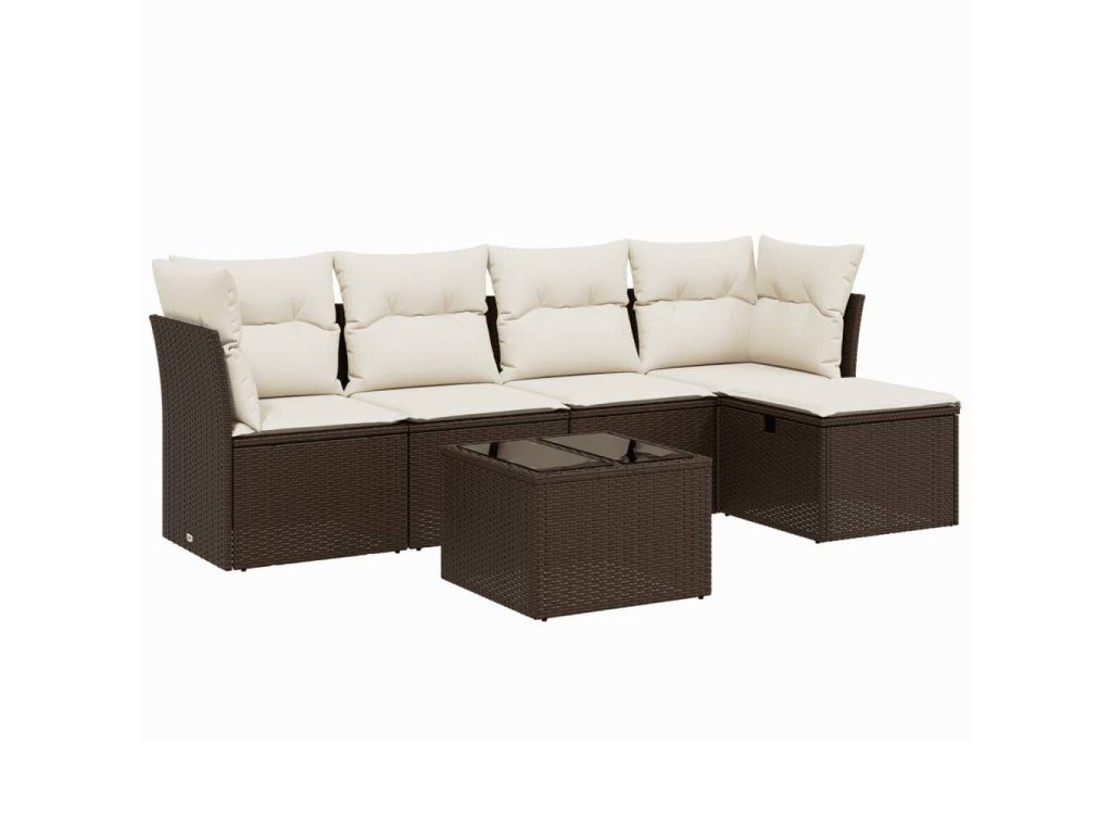 6dílná zahradní sedací souprava s poduškami hnědá polyratan 3263149