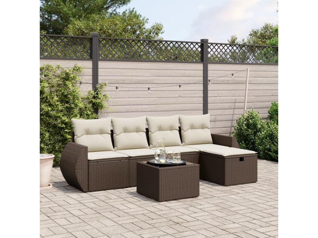 6dílná zahradní sedací souprava s poduškami hnědá polyratan 3264099