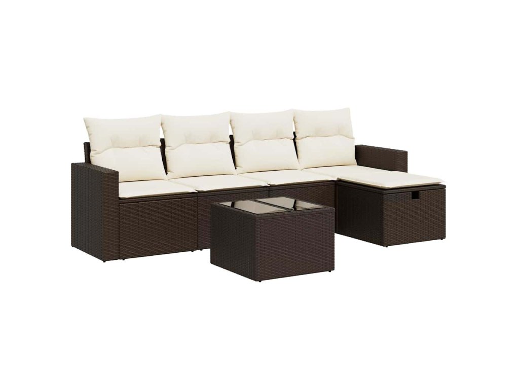 6dílná zahradní sedací souprava s poduškami hnědá polyratan 3325379