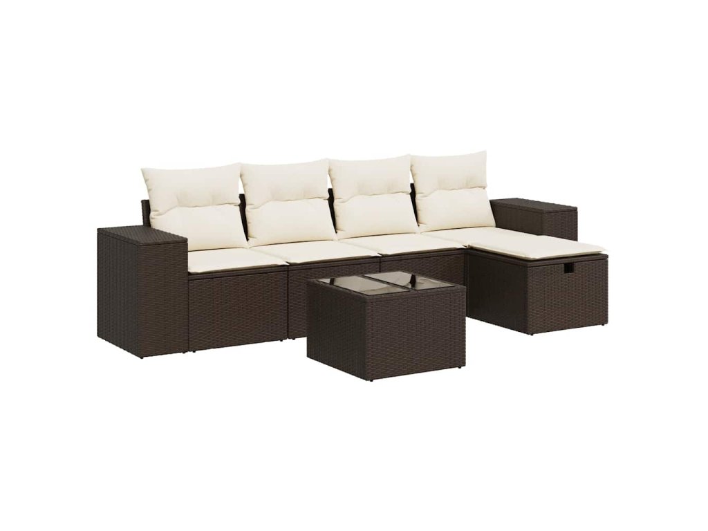 6dílná zahradní sedací souprava s poduškami hnědá polyratan 3325679