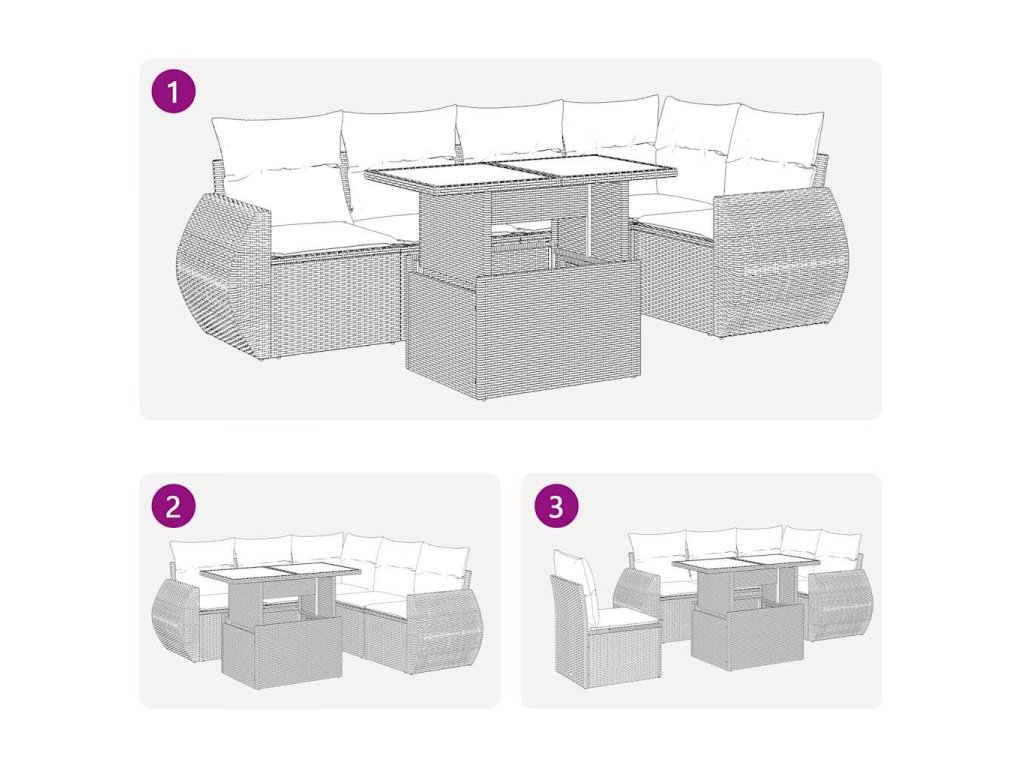 Tato zahradní sedací souprava je dokonalým doplňkem vaší zahrady, terasy nebo dvorku a poskytne vám pohodlné a příjemné místo, kde si můžete povídat s rodinou a přáteli nebo jen tak odpočívat a užívat si pobyt venku.
