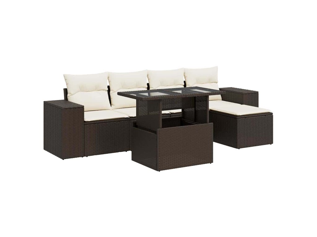 6dílná zahradní sedací souprava s poduškami hnědá polyratan 3326784