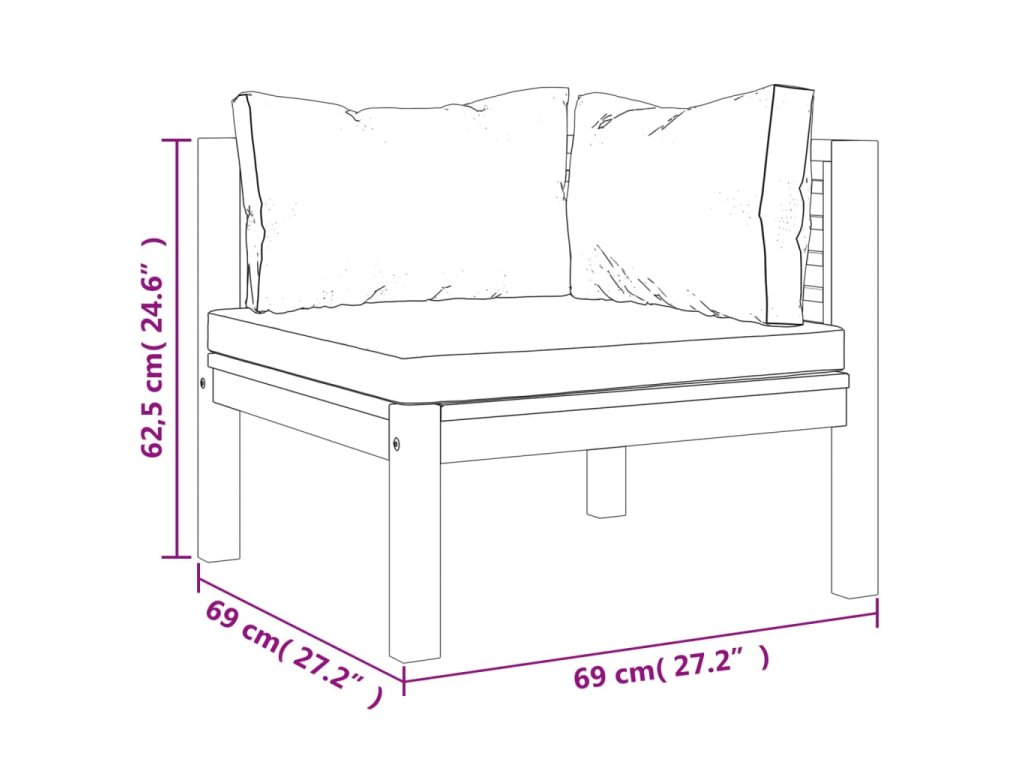 - Rozměry rohové pohovky: 69 x 69 x 62,5 cm (Š x H x V)