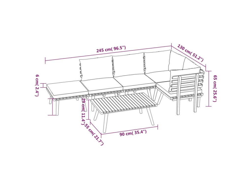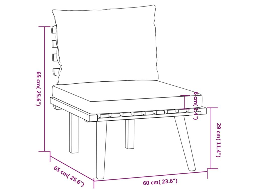 - Rozměry středové pohovky: 60 x 65 x 65 cm (Š x H x V)