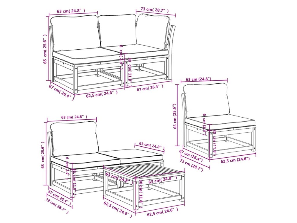 - Modulární design: Tato sada venkovního nábytku se vyznačuje modulární konstrukcí, je tedy zcela flexibilní a lze ji snadno přemisťovat, takže si můžete uspořádat venkovní nábytek dle vašich potřeb.