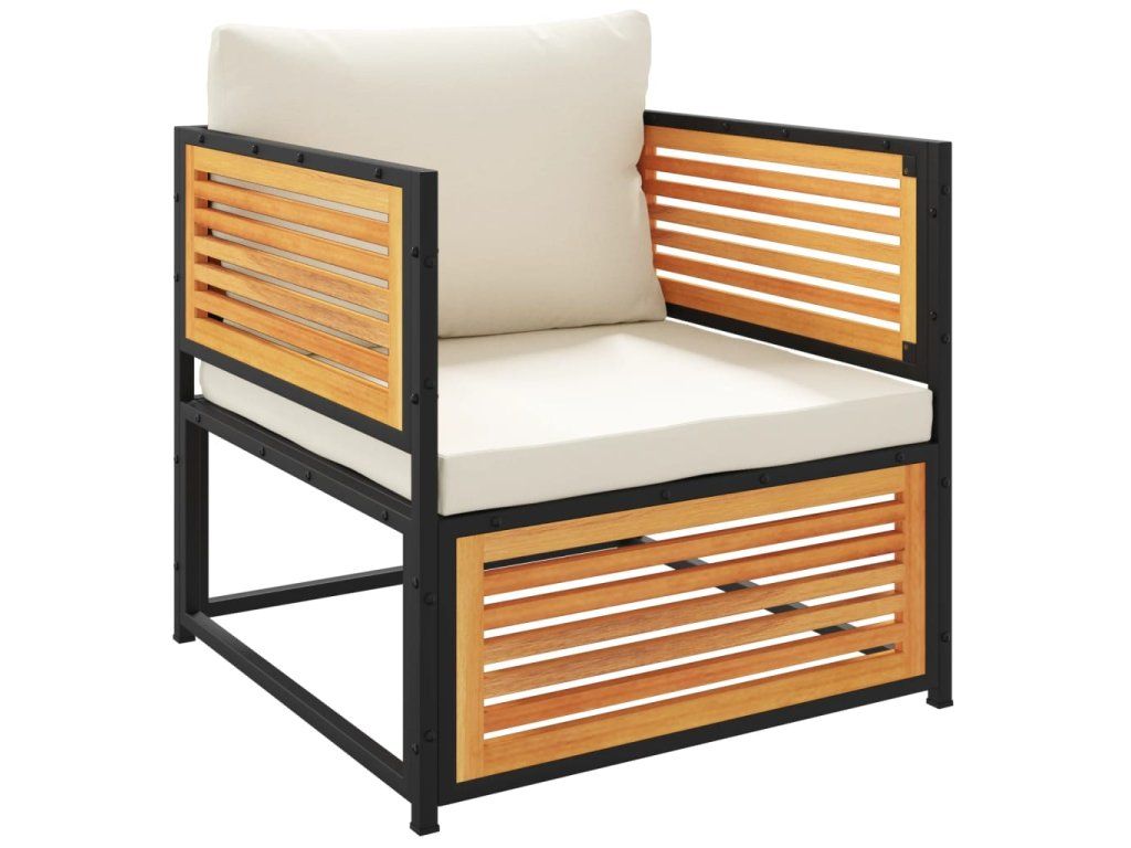 - Robustní a stabilní rám: Masivní akáciové dřevo je známé svou pevností a odolností. Jeho rozmanité odstíny a jedinečná struktura vláken mu dodávají atraktivní vzhled. Vyznačuje se dobrou stabilitou a odolností vůči povětrnostním vlivům, takže je ideální pro výrobu interiérového i venkovního nábytku. Ocelový rám s práškovým nástřikem zajišťuje, že zahradní nábytek je pevný a stabilní pro každodenní venkovní použití.