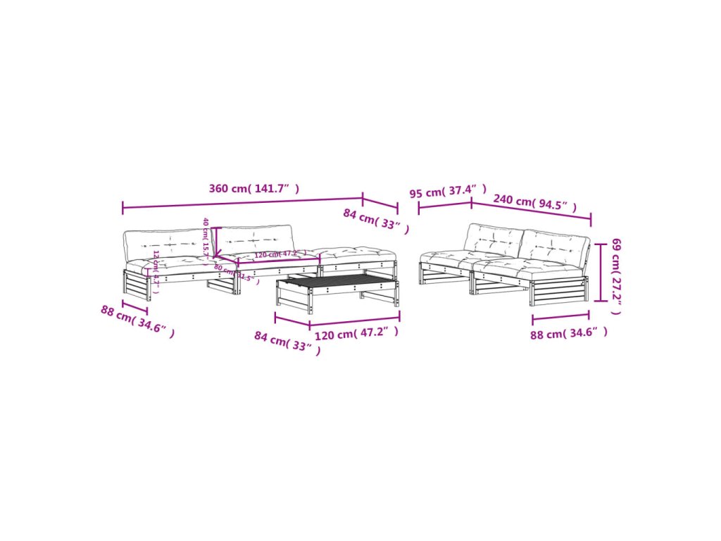 - Rozměry středové pohovky: 120 x 95 x 69 cm (D x Š x V)