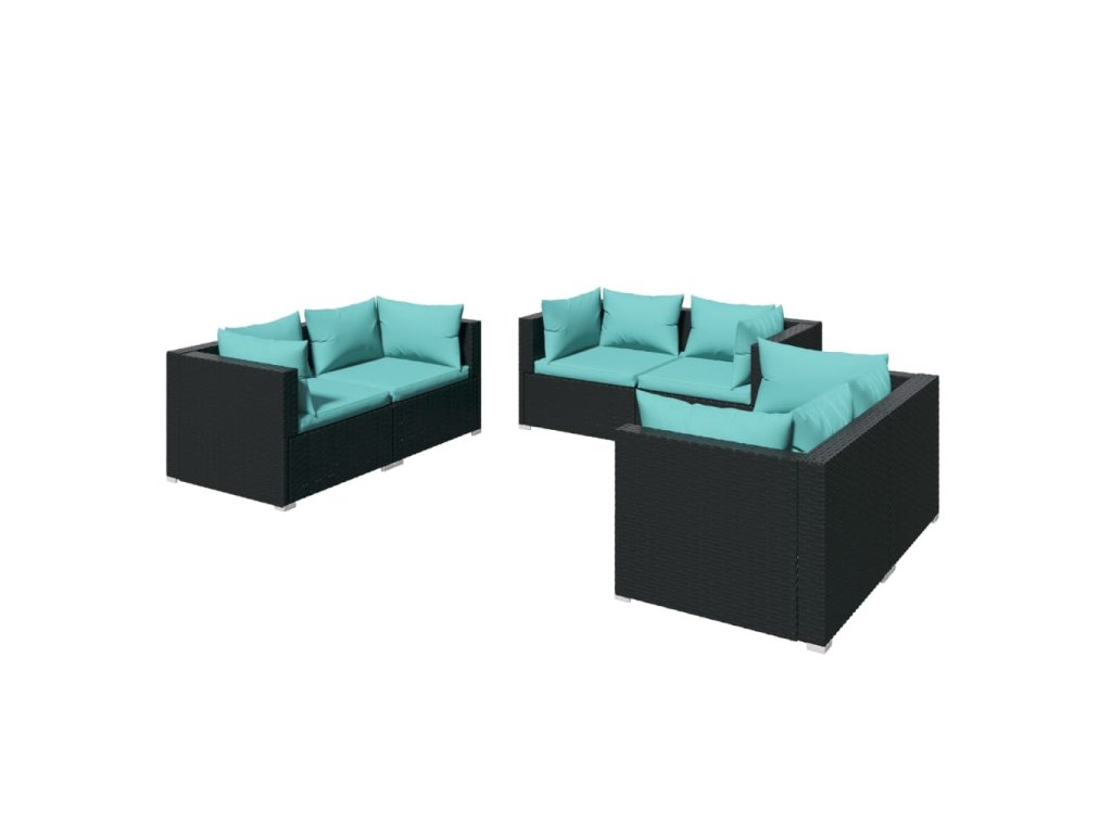 6dílná zahradní sedací souprava s poduškami polyratan černá 3102297