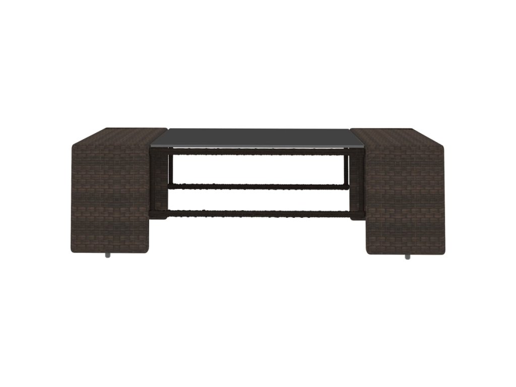 Sestava je vyrobená z klimaticky odolného PE ratanu, který je pevný, vhodný pro každodenní používání, a navíc se snadno čistí. Bytelný rám z práškově lakované oceli nábytku zaručuje mimořádnou odolnost. Na konferenční stolek s tvrzenou skleněnou deskou si můžete odložit vaše knihy, časopisy, čaj a vše, co potřebujete pro chvíle relaxace. Pohovka má nízkou hmotnost a modulární design, což znamená, že je zcela flexibilní a lze ji bez námahy přesouvat tak, aby krásně zapadla do každého prostředí. Tlusté odnímatelné podušky jsou velmi měkké a poskytnou vám maximální pohodlí. Sestavu je možné kombinovat s dalšími kusy nábytku, a vytvořit si tak zahradní posezení podle vašich představ!