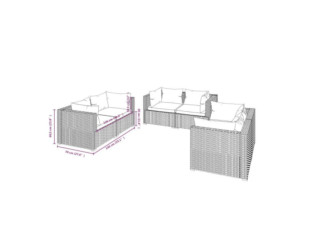 6dílná zahradní sedací souprava s poduškami polyratan hnědá 3102299