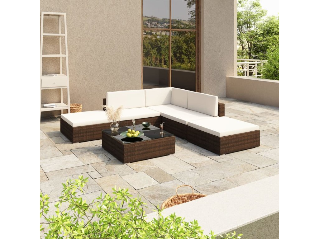 6dílná zahradní sedací souprava s poduškami polyratan hnědá 41256