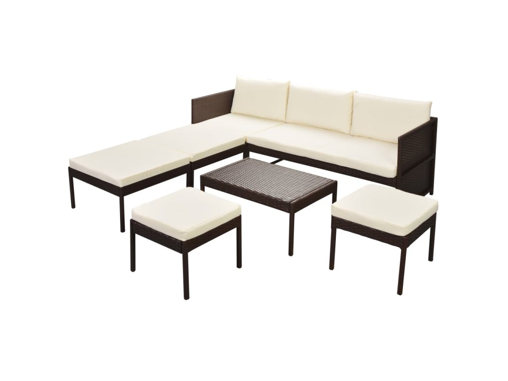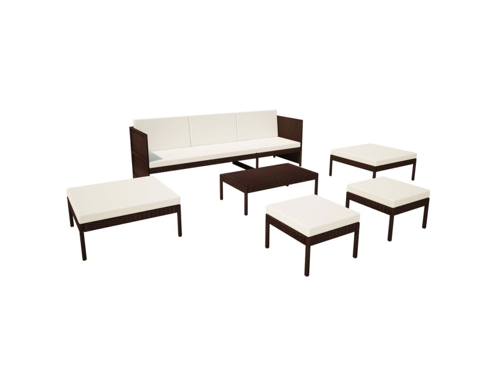 6dílná zahradní sedací souprava s poduškami polyratan hnědá 43009