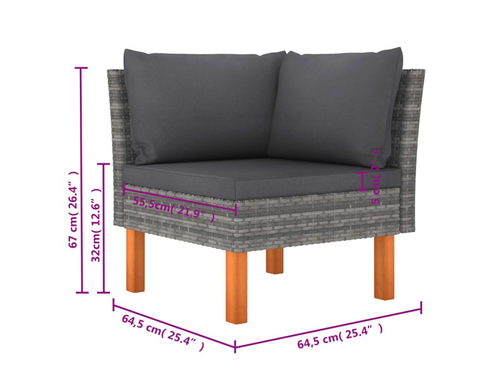 - Rozměry rohové pohovky: 64,5 x 64,5 x 67 cm (Š x H x V)