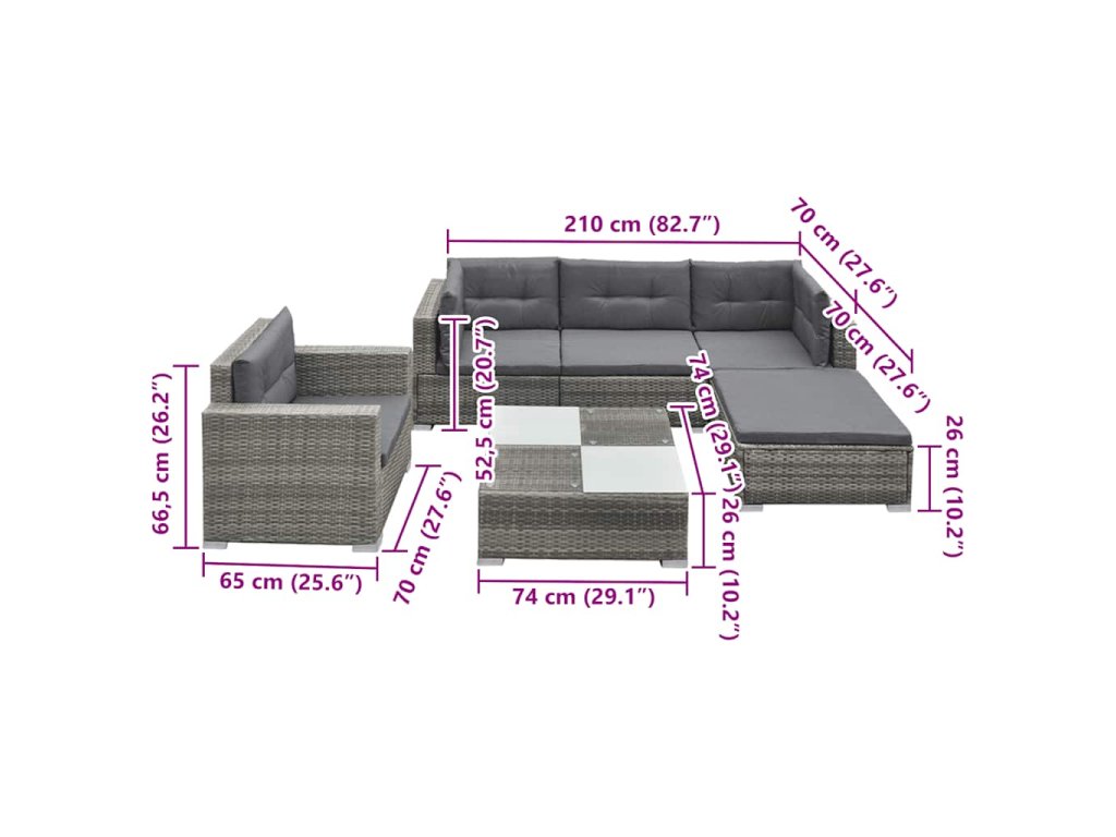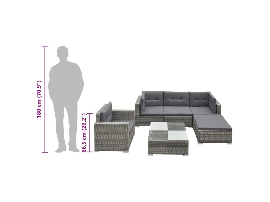 6dílná zahradní sedací souprava s poduškami polyratan šedá 41879
