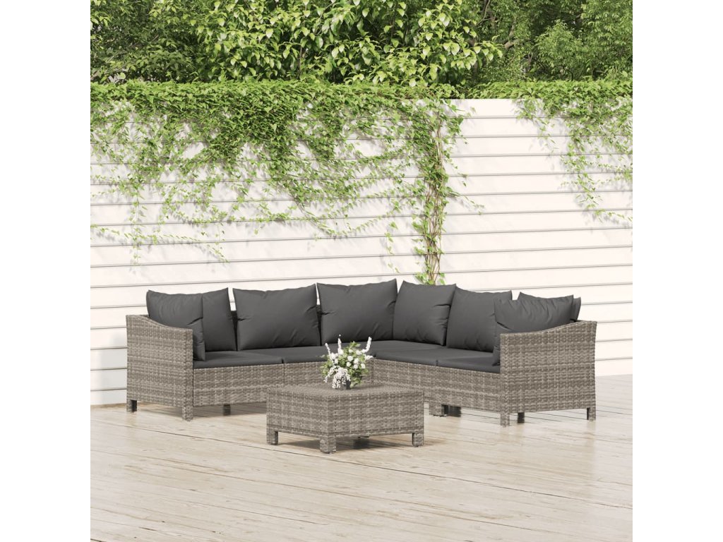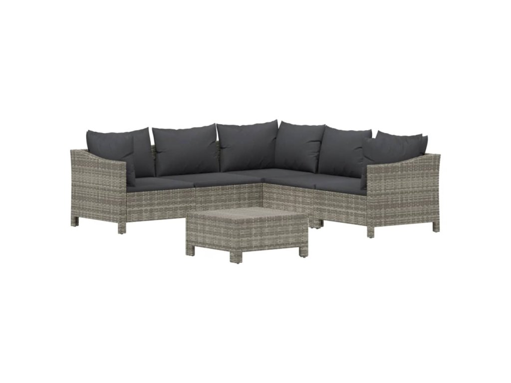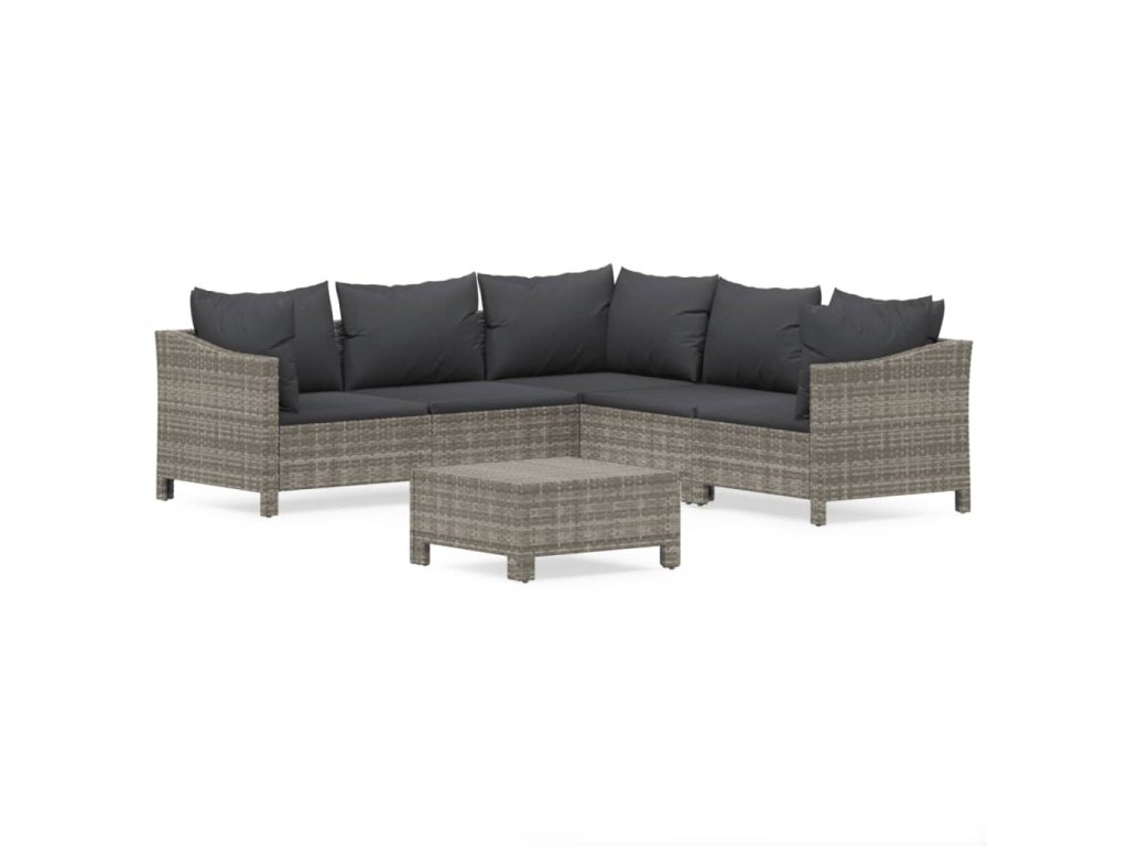 6dílná zahradní sedací souprava s poduškami šedá polyratan 3187278