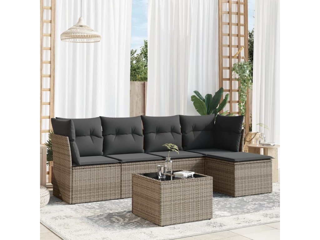 6dílná zahradní sedací souprava s poduškami šedá polyratan 3217570