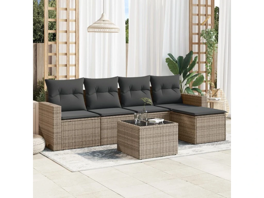 6dílná zahradní sedací souprava s poduškami šedá polyratan 3218890