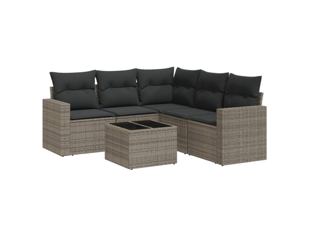 6dílná zahradní sedací souprava s poduškami šedá polyratan 3218950