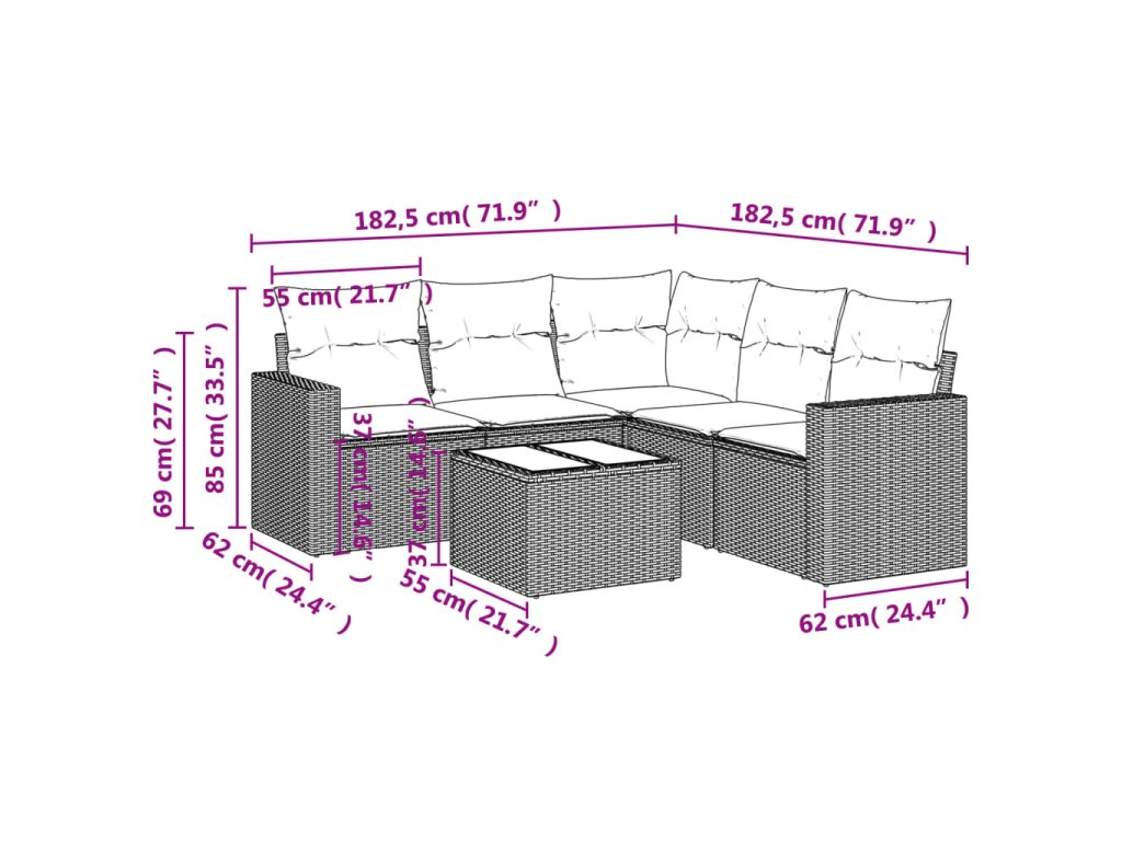Tato zahradní sedací souprava je dokonalým doplňkem vaší zahrady, terasy nebo dvorku a poskytne vám pohodlné a příjemné místo, kde si můžete povídat s rodinou a přáteli nebo jen tak odpočívat a užívat si pobyt venku.