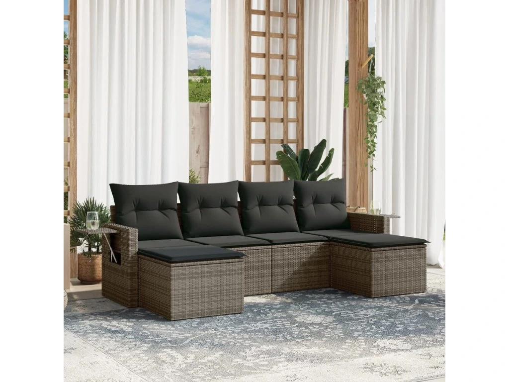 6dílná zahradní sedací souprava s poduškami šedá polyratan 3220519