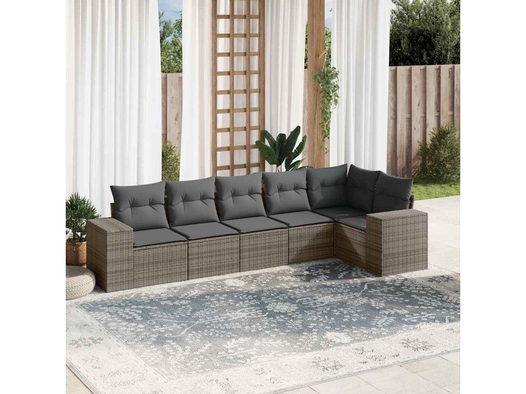 6dílná zahradní sedací souprava s poduškami šedá polyratan 3222589