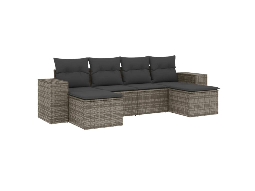 6dílná zahradní sedací souprava s poduškami šedá polyratan 3222919