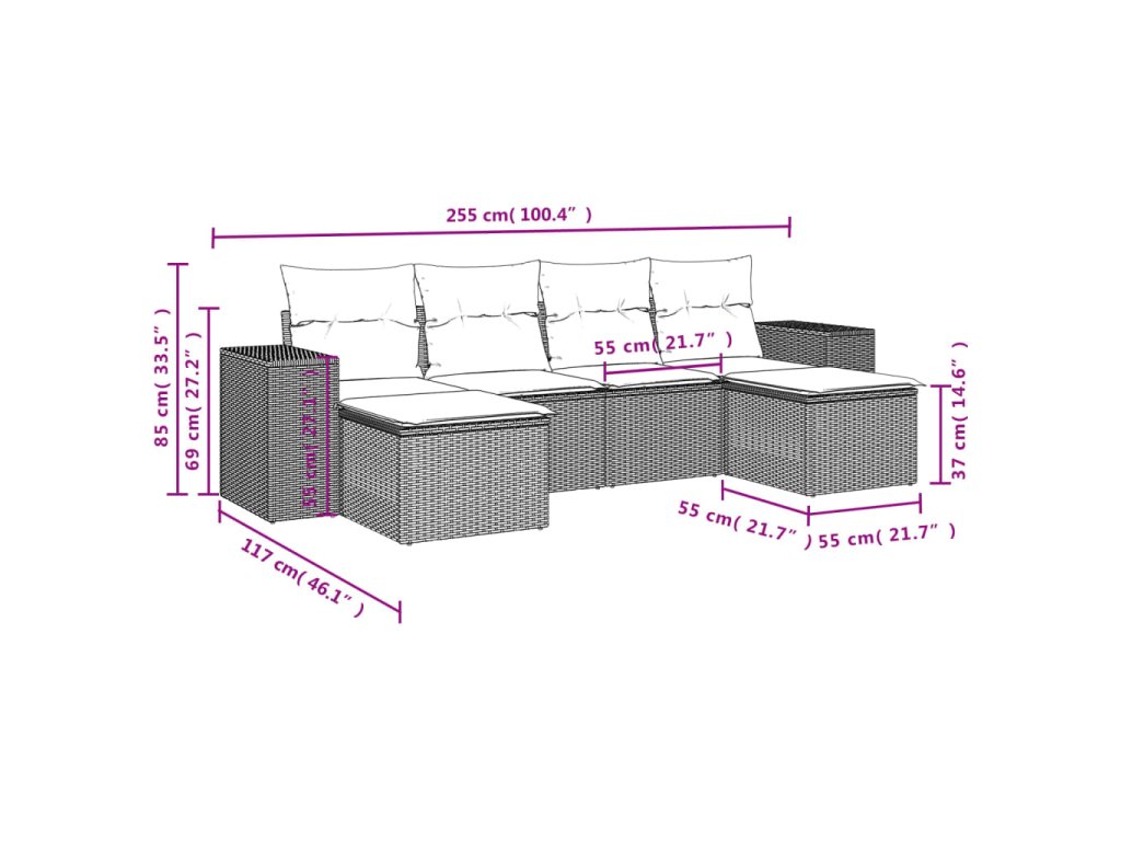 Tato zahradní sedací souprava je dokonalým doplňkem vaší zahrady, terasy nebo dvorku a poskytne vám pohodlné a příjemné místo, kde si můžete povídat s rodinou a přáteli nebo jen tak odpočívat a užívat si pobyt venku.