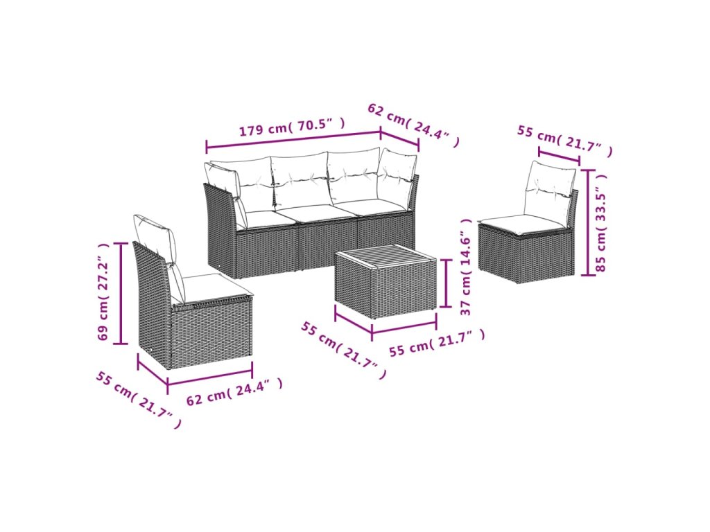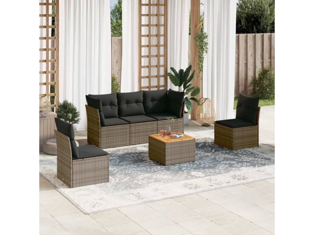 6dílná zahradní sedací souprava s poduškami šedá polyratan 3223547