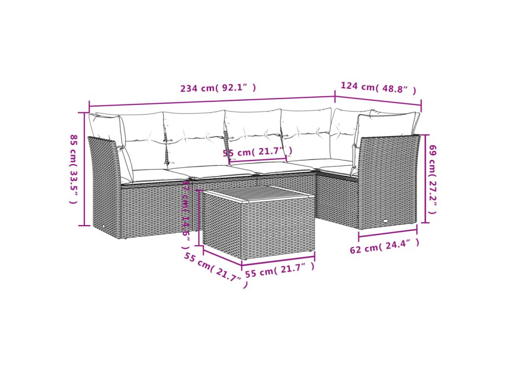 Tato zahradní sedací souprava je dokonalým doplňkem vaší zahrady, terasy nebo dvorku a poskytne vám pohodlné a příjemné místo, kde si můžete povídat s rodinou a přáteli nebo jen tak odpočívat a užívat si pobyt venku.