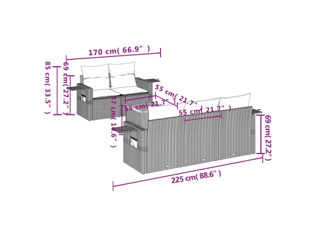 Tato zahradní sedací souprava je dokonalým doplňkem vaší zahrady, terasy nebo dvorku a poskytne vám pohodlné a příjemné místo, kde si můžete povídat s rodinou a přáteli nebo jen tak odpočívat a užívat si pobyt venku.