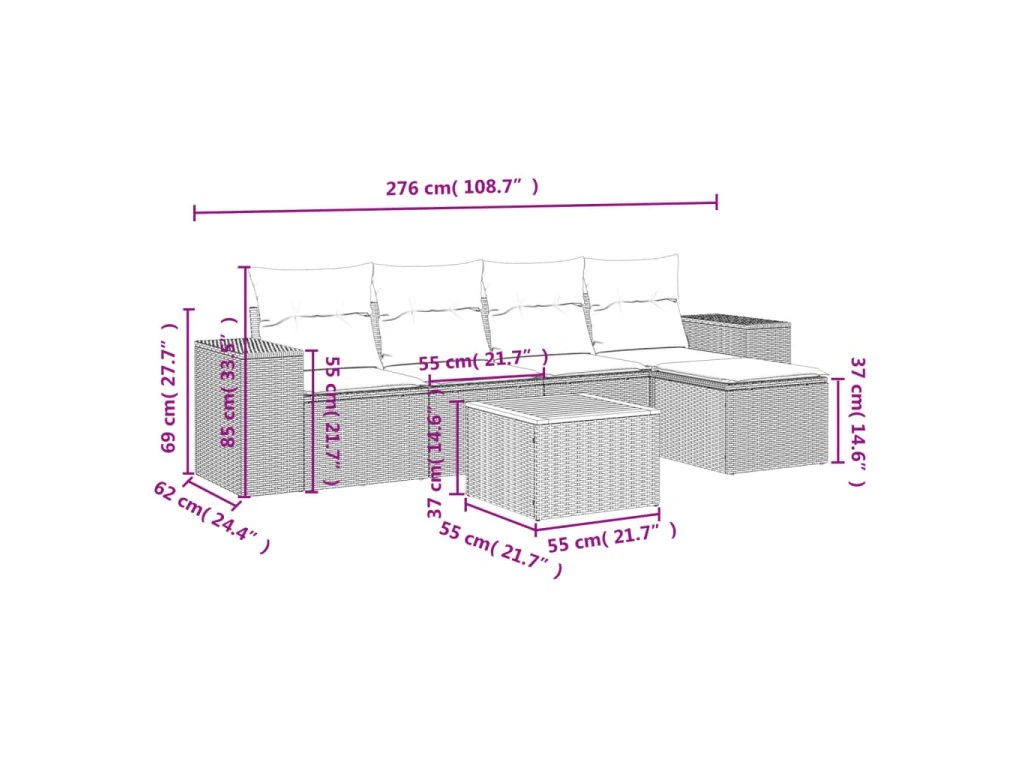 Tato zahradní sedací souprava je dokonalým doplňkem vaší zahrady, terasy nebo dvorku a poskytne vám pohodlné a příjemné místo, kde si můžete povídat s rodinou a přáteli nebo jen tak odpočívat a užívat si pobyt venku.